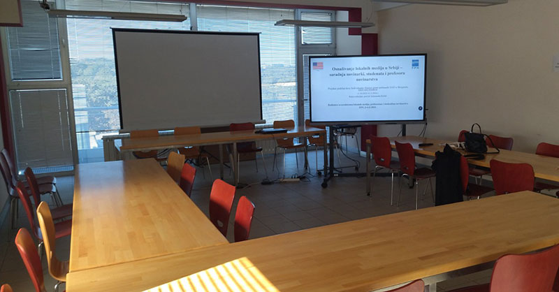 Početkom novembra 2023. održana je trodnevna radionica na Fakultetu političkih nauka u Beogradu. Uvodnu reč imali su prodekan za razvoj Fakulteta političkih nauka prof. dr Marko Simendić, šef Odeljenja za novinarstvo i komunikologiju Fakulteta političkih nauka prof. dr Slaviša Orlović i rukovoditeljka projekta prof. dr Aleksandra Krstić. Prof. dr Marko Simendić istakao je višestruke korisne elemente ovakvih projekata koji služe i studentima i nastavnom kadaru. On je naveo da je ovaj projekat usmeren na aktuelna dešavanja, ali da i u isto vreme neguje naučno istraživanje. Prof. dr Slaviša Orlović naglasio je važnost razvoja lokalnih medija, kao i to da oni doprinose poboljšanju medijske scene u Srbiji. On je pohvalio angažovanje i spremnost novinarki i novinara u lokalnim medijima da profesionalno obavljaju svoj posao.